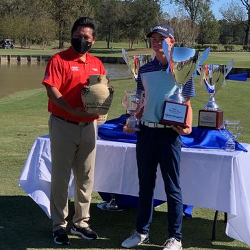 Beat a field of thirty qualifiers from across the country with rounds of 69-65-64 (-18) for an impressive 13 shot victory at Koasati Pines at Coushatta Resort in Kinder, LA. In doing so, became the first National Champion in the Boys 13 & under division and was featured in the event coverage on Golf Channel.